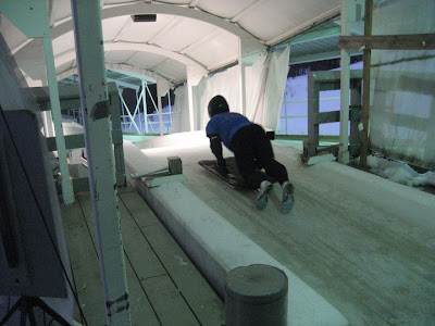 The push competition is where you practice the start of the skeleton. This is you sprinting with a board at your side as fast as you can and hopping on. This may seem easy but it is REALLY REALLY hard. I have been working on my sprints as most of you know and that EXPLOSIVE start. This is something you learn and I am still learning.